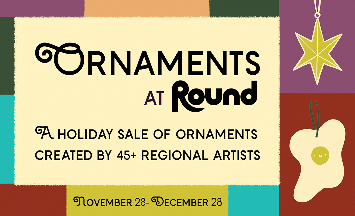 Round Clay Studio & Designs presents Ornaments at Round, a holiday show and sale of ornaments made by 45+ regional artists. Join us for the opening reception November 29 1-3pm where you can chat with the artists and be the first to see (and shop!) this exciting array of artworks.